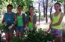 Учащиеся под руководством школьного психолога Чуприной Ф.М. работают по очистке территории и на пришкольном участке.