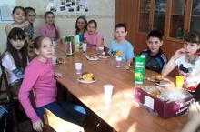 В последний учебный день ученики 5в класса, совместно с классным руководителем, решили провести чаепитие и опраздновать конец самой длинной четверти. Были и конкурсы, и подарки, и танцы.