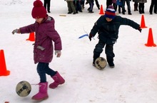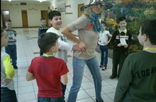 После обеда играли в "живые" шашки, изготавливали эмблемы своих факультетов. -
