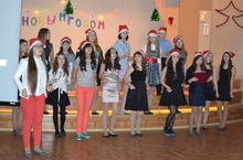 25 декабря учащиеся среднего звена и старшеклассники побывали на мюзикле. Это наша первая попытка добавить некий американский стиль в проводимые мероприятия. Но, несмотря на это, можно с гордостью сказать, что ребята справились весьма неплохо! Учениками были спеты такие новогодние хиты как «LastChrirstmas» (акапелла), постановка «Letstwistagain» и финальная песня «HappyNewYear».