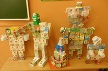 По программе "Правильное питание(М, М. Безруких) в 3 а классе(кл. рук-ль: АндрееваМ. В.) было проведено оздоровительное занятие по укреплению и сохранению здоровья детей- витаминный час, на котором дети узнали о роли приема витаминов в осенне-зимний период , попили соки, а из коробочек из под соков изготовили такие вот чудесные работы.