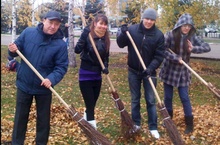 Сегодня молодые учителя нашей школы участвовали в общерайонном субботнике в Парке Победы.
