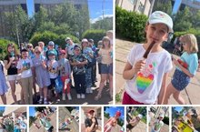 Здравствуй новый день лагерной смены! Как обычно по порядку все мы вышли на зарядку! После зарядки вкусно позавтракали и 1 отряд отправился в районную библиотеку на мероприятие «Экологический калейдоскоп», а 4 и 5 отряды отправились в ЦДТ для участия в мероприятии «Краски лета», остальные отряды играли в настольные и подвижные игры. Хороших выходных ребята, увидимся в понедельник.