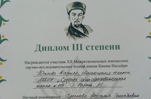 Поздравляем!!!25 март көнне балалар арасында XX төбәкара фәнни-тикшеренү укулары булып узды.Анда безнең мәктәптән 11А сыйныф укучысы Йосыпова Камилә катнашты. Лаеклы эш күрсәткәне өчен 3 дәрәҗә диплом белән бүләкләнде. Фәнни җитәкчесе: Преснова Н.Г.