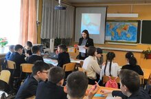 В рамках конкурса профессионального мастерства педагогов, открытый урок по географии в 6Б классе дала Быкова М.Н. Урок по структуре соответствует уроку ОНЗ. На всех этапах урока ученики были вовлечены в активную деятельность. В ходе урока развивались навыки работы с картографическими источниками информации. Для повышения интереса к уроку использовалась групповая форма работы.