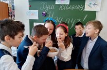 С утра школа встречала детей с песнями на их родных языках. Ребята знакомились с информацией о появлении праздника, с экранов транслировались высказывания и крылатые выражения о значении и чистоте родных языков. На переменах звучали стихотворения на родных языках, организованы выставки поделок обучающихся, иллюстраций и рисунков с национальным колоритом. Выставка книг рассказывала о национальных традициях, блюдах и украшениях. Ребята с удовольствием поиграли в национальные игры, пели на родном языке, танцевали. На уроках беседовали об известных личностях своего народа, отгадывали загадки, вспоминали пословицы - народные жемчужины. Свою любовь к родному языку ребята выразили в своих сочинениях на тему "Родной язык, ничем не заменимый". Учащиеся среднего звена показывали младшим сценки о языках, подчеркивая важность сохранения их чистоты. На одной из перемен детей порадовал флешмоб с национальными танцами.