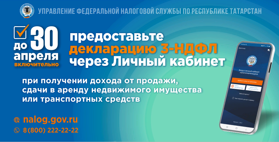 До 30 апреля предоставьте декларацию 3-НДФЛ через Личный кабинет 19.01.2024