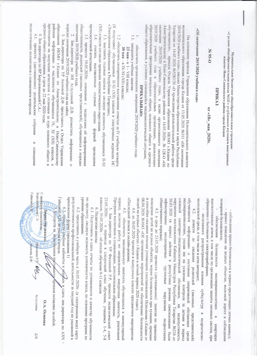 Приказ об окончании 2019-2020 учебного года 21.05.2020