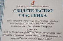 Завтра, 12.10.2019, на базе Республиканского олимпиадного центра "Дуслык" состоится региональный этап Чемпионата среди команд школьников по играм Что? Где? Когда? в Приволжском федеральном округе. Среди команд - наша команда - "Terra Incognita", занявшая на муниципальном этапе I место среди команд школ г.Казани. ПОЖЕЛАЕМ ИМ УДАЧИ!!!