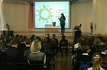 В рамках экологического месячника в гостях у нас побывали представители Поволжской экологической компании, которые презентовали обучающимся проект «Зелёный круг».