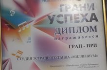 Студия эстрадного танца "Миллениум" получили Гран-при в Республиканском творческом конкурсе "Грани Успеха"! Руководитель: Шарифуллина Эльвина Яфкатовна. Поздравляем!!! Молодцы!