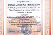 Поздравляем Садкина Дмитрия (8Б класс) с победой и Сидоренко Егора (10А класс) с призовым местом в конкурсе "Нобелевские надежды КНИТУ - 2014"! Желаем дальнейших успехов!