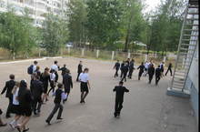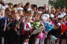 Сегодня в школе состоялись торжественные линейки, посвящённые дню знаний. В этом году порог школы впервые переступили 126 первоклассника. Всего в школе будут учиться 1100 детей в 40 классах