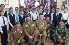 Бүген безнең мәктәптә патриотик тәрбия бирү кысаларында рус теле һәм әдәбияты укытучылары 6Б, 7В, 8В, 9А, 9В, 9Г сыйныф укучылары Әфган сугышы ветераннары белән кызыклы һәм танып-белү очрашуы оештырдылар,