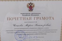 Уважаемая Мария Викторовна! Поздравляем Вас с полученнием заслуженной награды, ПОЧЕТНОЙ ГРАМОТЫ Министерства просвещения Российской Федерации за заслуги в сфере образования и добросовестный труд. Желаем Вам дальнейшего успешного жизненного пути, исполнения задуманного, скорейшей реализации масштабных целей!