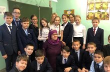 «Основы духовно-нравственной культуры народов России» 18.11.2019 Сегодня 18 ноября в рамках проведения урока «Основы духовно-нравственной культуры народов России» по теме «Мужество» перед учениками 5 классов выступила победительница республиканского конкурса для женщин с ограниченными возможностями «Жемчужина Татарстана- 2018» Регина Иванова. Она рассказала обучающимся о конкурсе, о своей благотворительной деятельности, направленной на помощь детям с особенностями развития и о своих увлечениях, одним которых является парашютный спорт. Регина своим примером показала, что мужество присуще не только мужчинам войнам, но и маленьким хрупким женщинам. Дети долго не отпускали Регину, буквально завалили ее своими вопросами. А за самый интересный вопрос ученик получил от гостьи сладкий подарок.