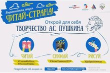 Напоминаем, что с 19 мая по 6 июня пройдет масштабная серия акций по чтению Пушкина "Читай - Страна!" Открой для себя творчество А.С. Пушкина. Акция разделена на три тематических блока: "Читай", "Снимай", "Рисуй".