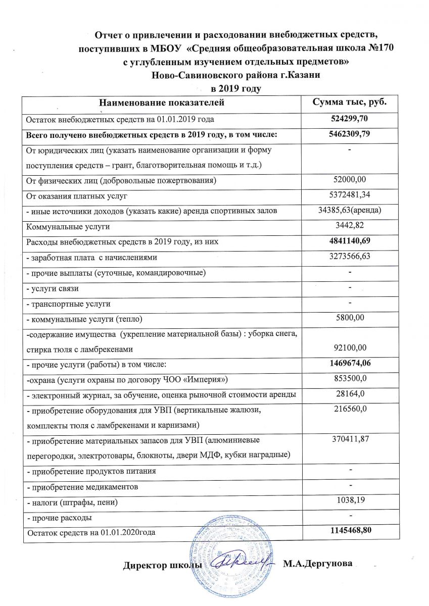 Отчет о поступлении и расходовании внебюджетных средств за 2019г.
