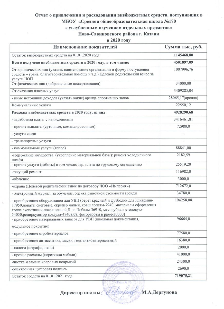 Отчет о поступлении и расходовании внебюджетных средств за 2020г.