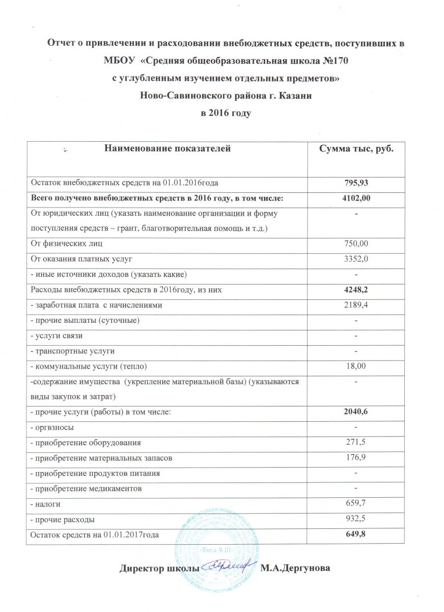 Отчет о поступлении и расходовании внебюджетных средств за 2016г