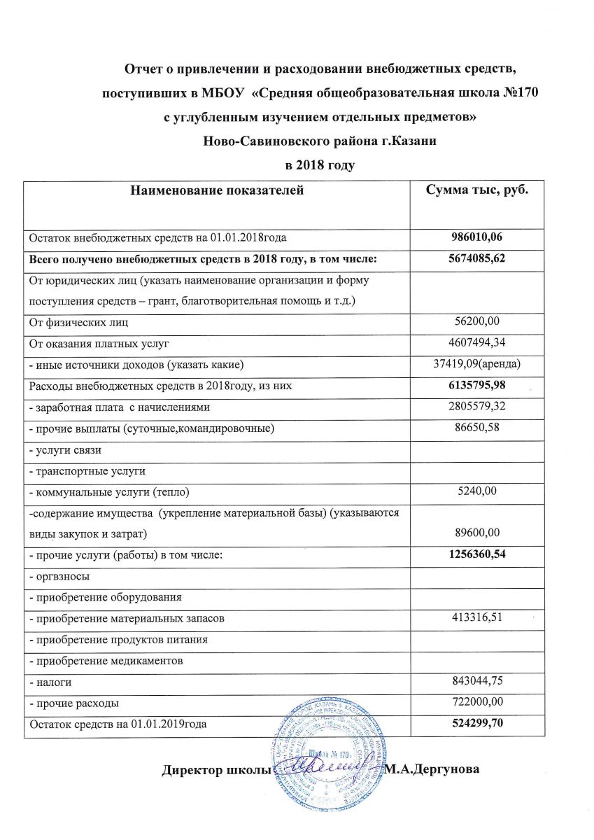 Отчет о поступлении и расходовании внебюджетных средств за 2018г.