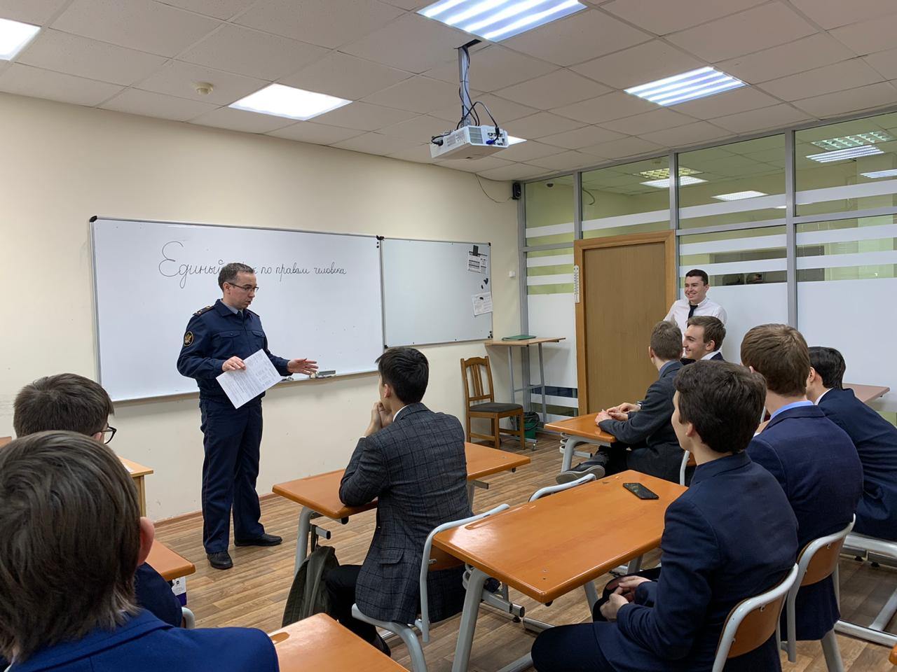 Старший лейтенант ФСИН Айрат Зарипов вытсупил перед ребятами в рамках "Единого урока по правам человека". Затронул такие темы, как "Соблюдене закона: права и обязанности", "Финансовые преступления и ответственность", "Борьба против коррупции" / Укучыларыбыз алдында өлкән лейтенант Айрат Зарипов чыгыш ясады. Түбәндәге темаларга тукталып үтте: "Закон: хокулар һәм бурычлар", "Коррупциягә каршы көрәш" һ.б.