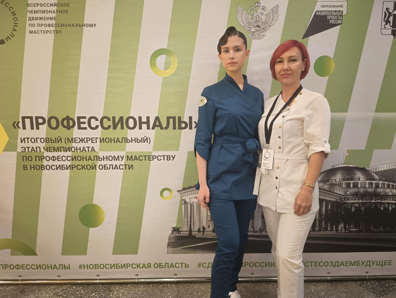 Тем временем, в Новосибирском колледже парикмахерского искусства Гордеева Арина – студентка группы 242121, с тренером-наставником Еленой Евгеньевной Леухиной достойно представляют компетенцию «Эстетическая косметология».