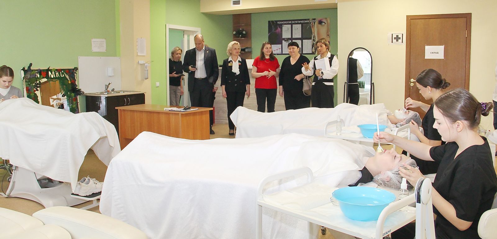 Опубликовано: 04.11.2025В рамках мероприятий по реализации федерального проекта «Профессионалитет» 1 ноября 2025 года в Международном колледже сервиса состоялась встреча с кураторами проекта, представителями Института развития образования Российской Федерации Варламовой Татьяной Андреевной, Дерибиной Татьяной Валерьевной и исполняющим обязанности заместителя министра образования и науки Республики Татарстан Федоровым Андреем Александровичем. Гости посетили современные лаборатории, в которых студенты отрабатывают свои умения и навыки по разным направлениям подготовки:
