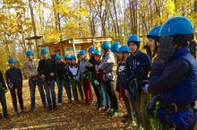 Сегодня 8-е классы решили экстремально отдохнуть и насладиться красотой природы. C этой целью они вместе со своими классными руководителями отправились в Sky park в парк Горьково. Благодаря сложным трассам, они узнали, что могут пройти любые препятствия, преодолевая свой страх и поддерживая друг друга.