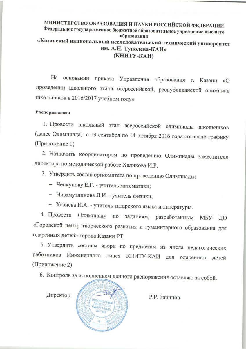 График проведения школьного этапа республиканской олимпиады школьников в 2016/2017 учебном году