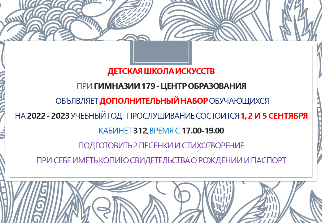 | Короткое название: | ДШИ - "Гимназия № 179 - центр образования" |