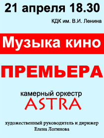 Дорогие друзья! 21 апреля в 18.30 в КДК им.В.И.Ленина состоится сольный концерт камерного оркестра "ASTRA"