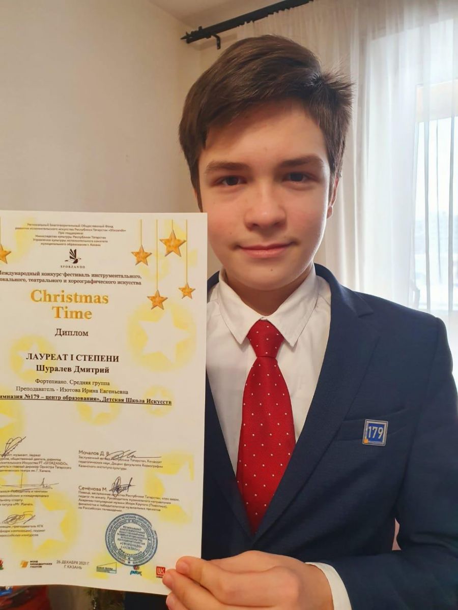 Поздравляем Шуралева Дмитрия (преподаватель Изотова Ирина Евгеньевна) со званием лауреата l степени Международного конкурса "Christmas time"