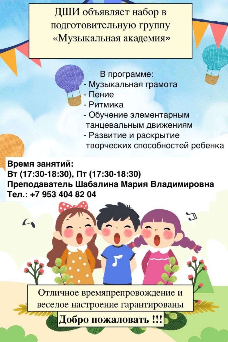 Детская школа искусств при Гимназии 179 объявляет набор в подготовительную группу "Музыкальная академия"
