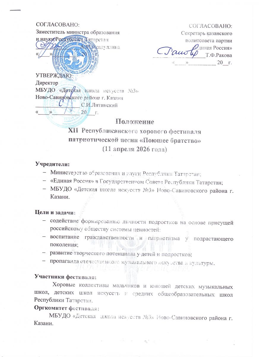 Положение XII Республиканского хорового фестиваля патриотической песни "Поющее братство"