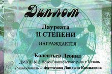 С 4 -6 декабря в Казани проходил Международный проект "БАЛТИЙСКИЙ ФЕСТИВАЛЬ " "СВЕТ РОЖДЕСТВЕНСКОЙ ЗВЕЗДЫ - ЗВЕЗДА КАЗАНИ", где принял участие учащийся нашей школы Калентьев Леонид и стал Лауреатом II степени. Поздравляем с победой Калентьева Леонида и его преподавателя Фаттахову Ландыш Камиловну!