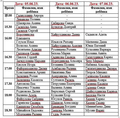 15.30 - Азметзянов Карим, Горюхалова Вероника, Бондарь Катя;