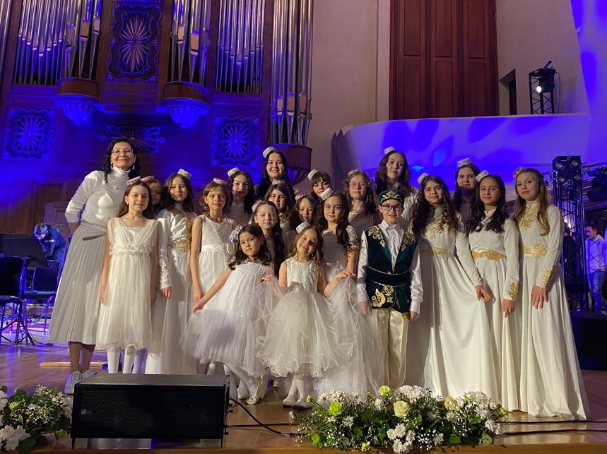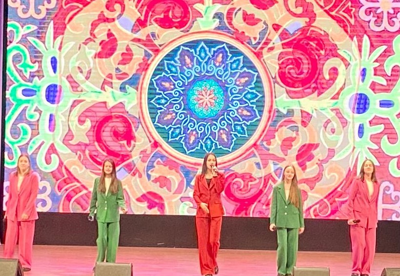 В праздничном концерте на сцене актового зала полилингвального комплекса «Адымнар» выступили девочки из вокального ансамбля «Лейсан» (руководитель В.Д. Гатауллина) и Муртазин Амир (преподаватель Л.Б. Маркова).