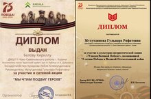 Одновременно с этим Гульнара Рифатовна, - как исполнитель и как педагог вместе со своими учащимися, - поддержала сетевую акцию «Мы чтим подвиг героев», проведённую в Республике Карелия.