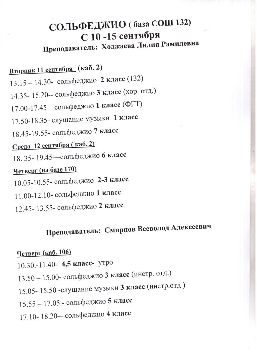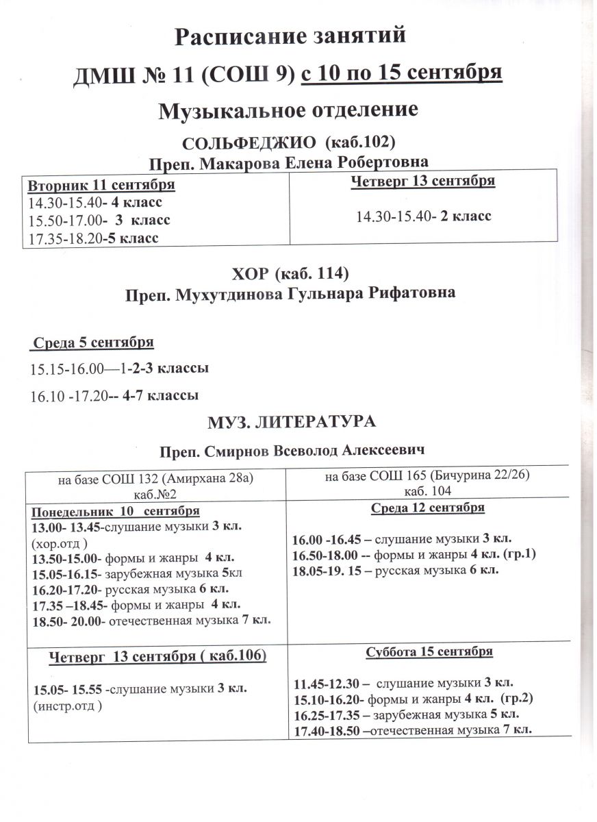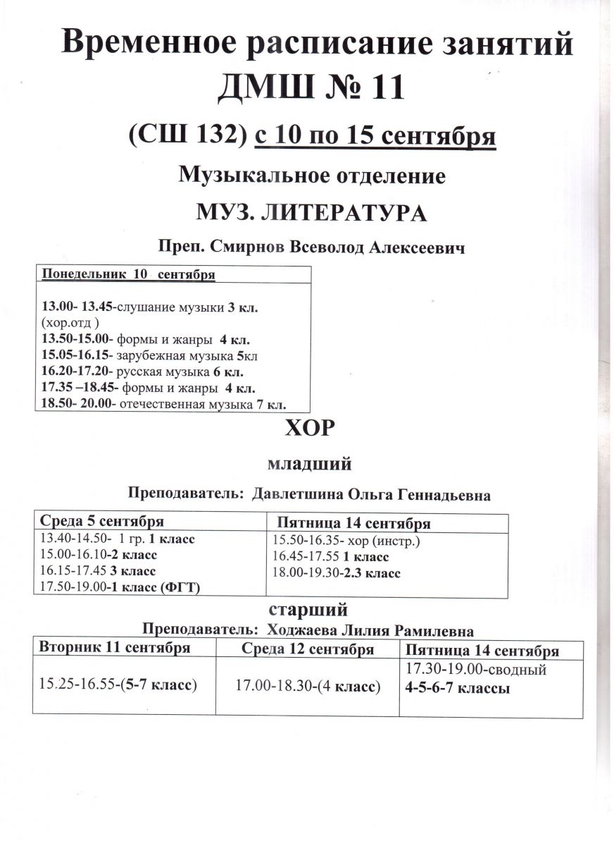 Временное расписание занятий ДМШ № 11 (СШ 132) с 10 по 15 сентября