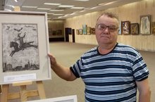 Среди работ, представленных на выставке, вы сможете увидеть работу нашего преподавателя Рашита Хамитовича Гаимова «Идегей и дочь Тамерлана Акбиляк», выполненную в технике офорта.