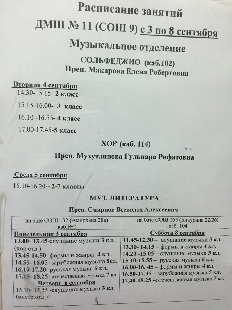 Временное расписание занятий ДМШ № 11(СОШ 132) все отделения.