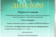 18 февраля ученик нашей школы Исмагилов Ринат стал Лауреатом I степени на 59-Международном фестиваль-конкурсе детских, юношеских, молодежных, взрослых творческих коллективов и исполнителей "Vivat, Kazan" в рамках творческого проекта "Адмиралтейская звезда"!