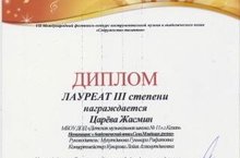 Поздравляем Царёву Жасмин, лауреата III степени, участницу международго конкурса "Виктория"