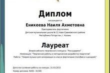 Поздравляем Еникееву Н.А. с победой во Всероссийском творческом конкурсе "Рассударики"