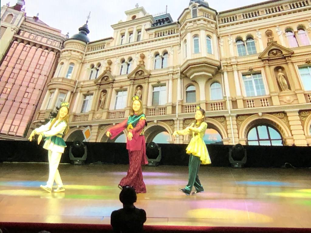На сцене дворца культуры прозвучали песни в исполнении заслуженной артистки РТ Эльвиры Розали (преподаватель по классу эстрадного вокала Э.Х. Шавалиева) и её учениц – трио «Ак канатлар».