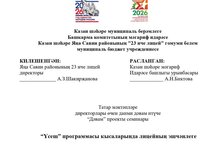 - Дуэт Давлетшина Рамина, Сибгатуллина Элина - Лауреат 1 степени в номинации "Вокал" "Военно-патриотическая песня", 9-11 лет. Преподаватель Самигуллина Л.И., концертмейстер Ямалеева А.Я.