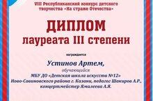 - Устинова Артема - Лауреата 3 степени, преподаватель Шакиров А.Р.,концертмейстер Ямалеева А.Я.