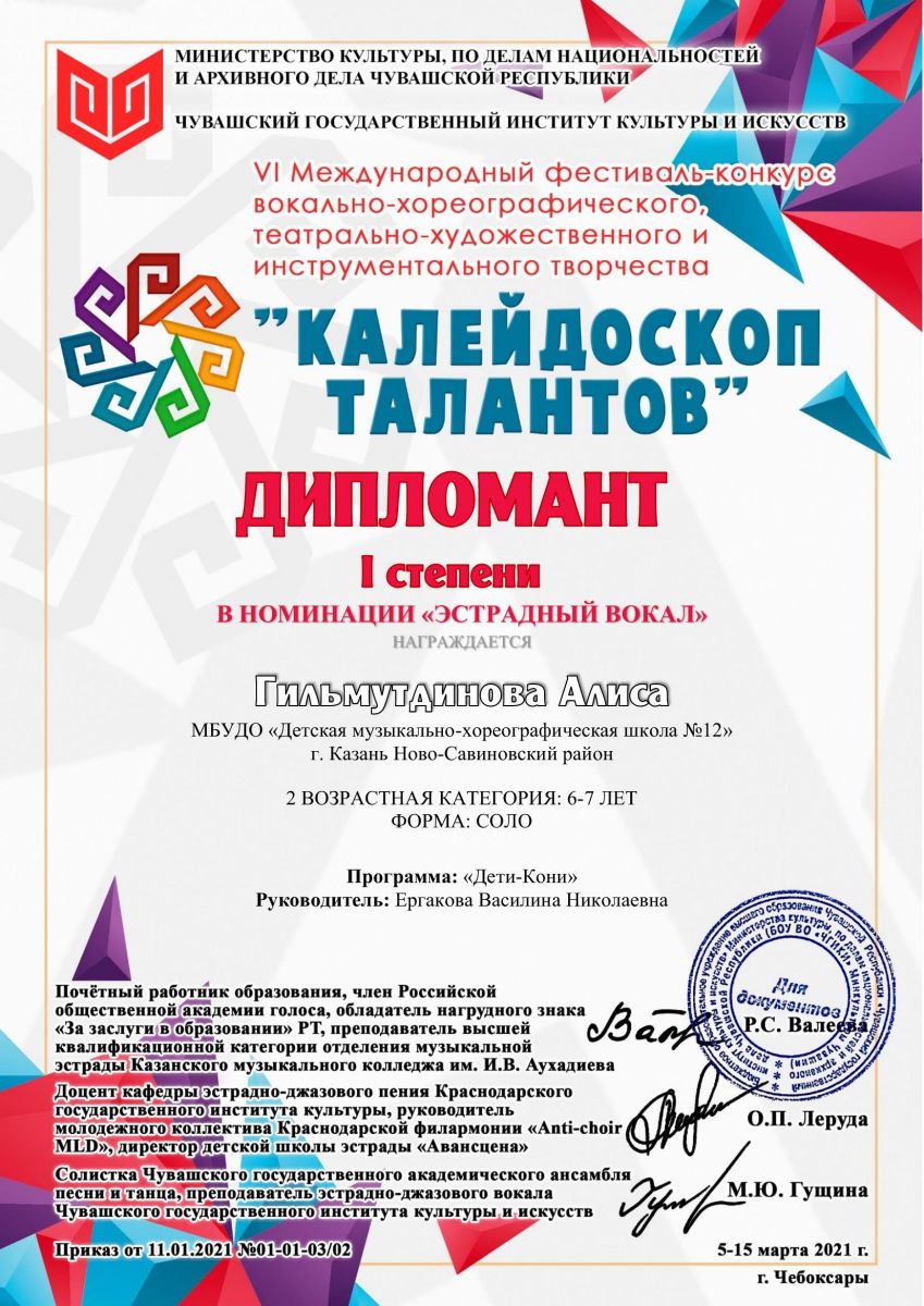 -Гильмутдинову Алису - Дипломанта 1 степени (преподаватель Ергакова В.Н.)