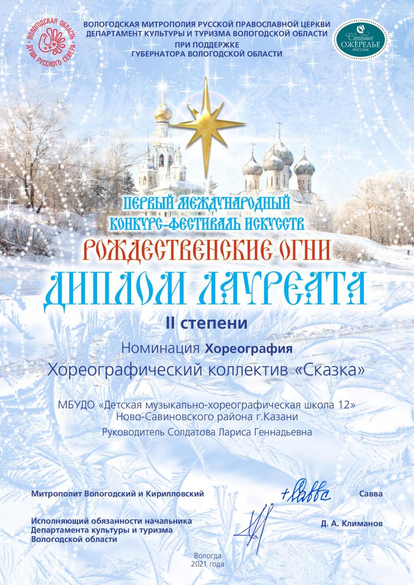 - Хореографический коллектив "Сказка" - Лауреатов 2 степени (преподаватель Солдатова Л.Г.)